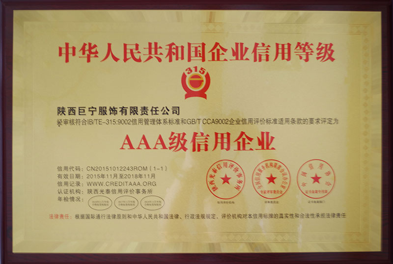 Shaanxi giant Ning apparel limited liability company Address: Baoji City in Shaanxi Province of the Taiwan Area Jiaya Li Bao Shi Road No. 1